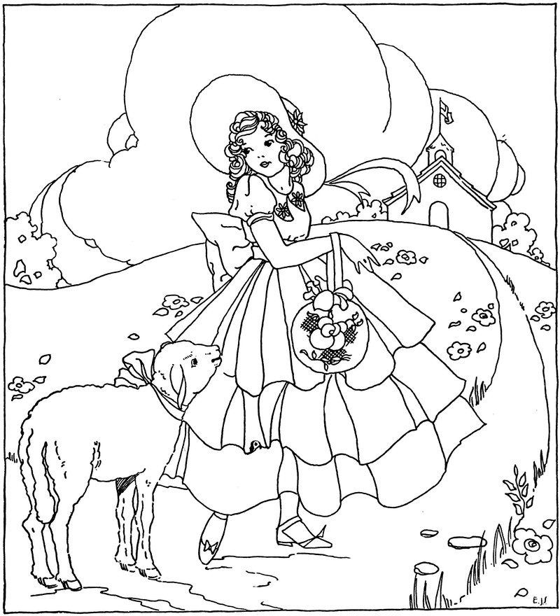 In the famous nursery rhyme, the little lamb gets all the credit for following Mary everywhere, but this 1896 illustration sets the record straight: Mary's sheepdog deserves some acclaim for directing the action.
