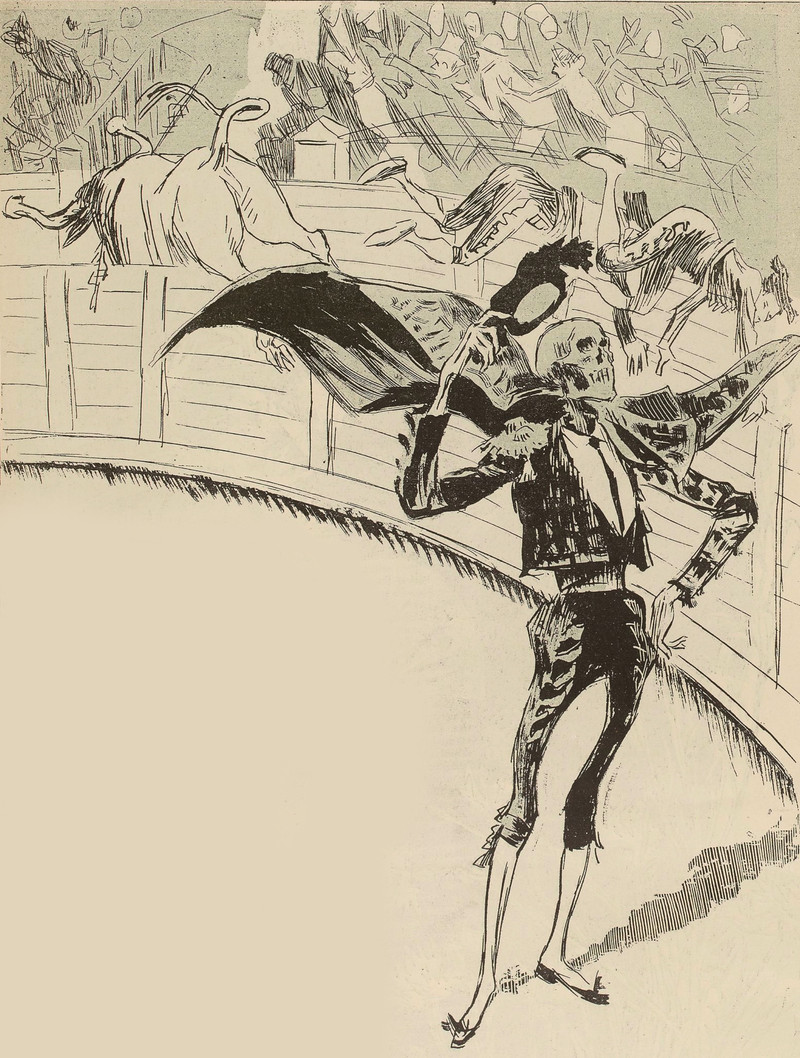 #vintage illustration #death #skeleton #matador #bullfighter
