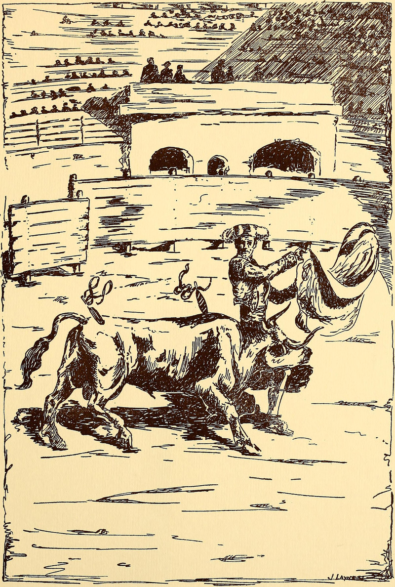 #vintage illustration #bull #matador #bullfighter #grindstone