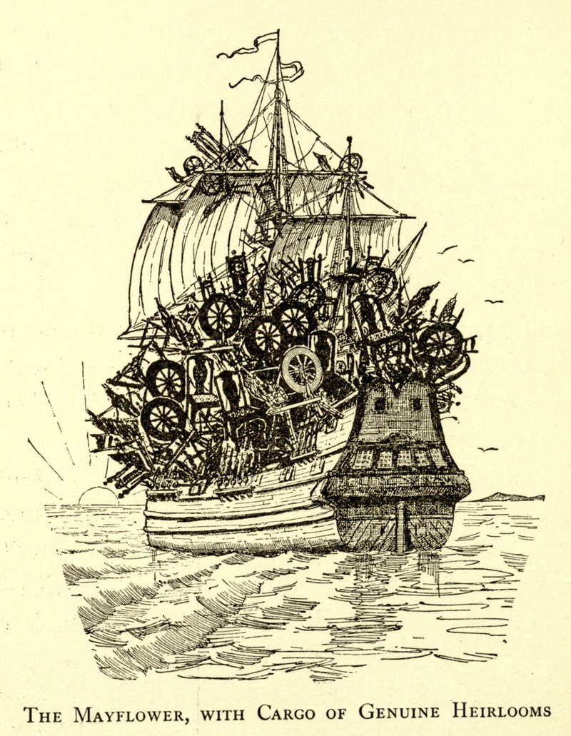 #vintage illustration #ship #spinning wheel #illustration #mayflower