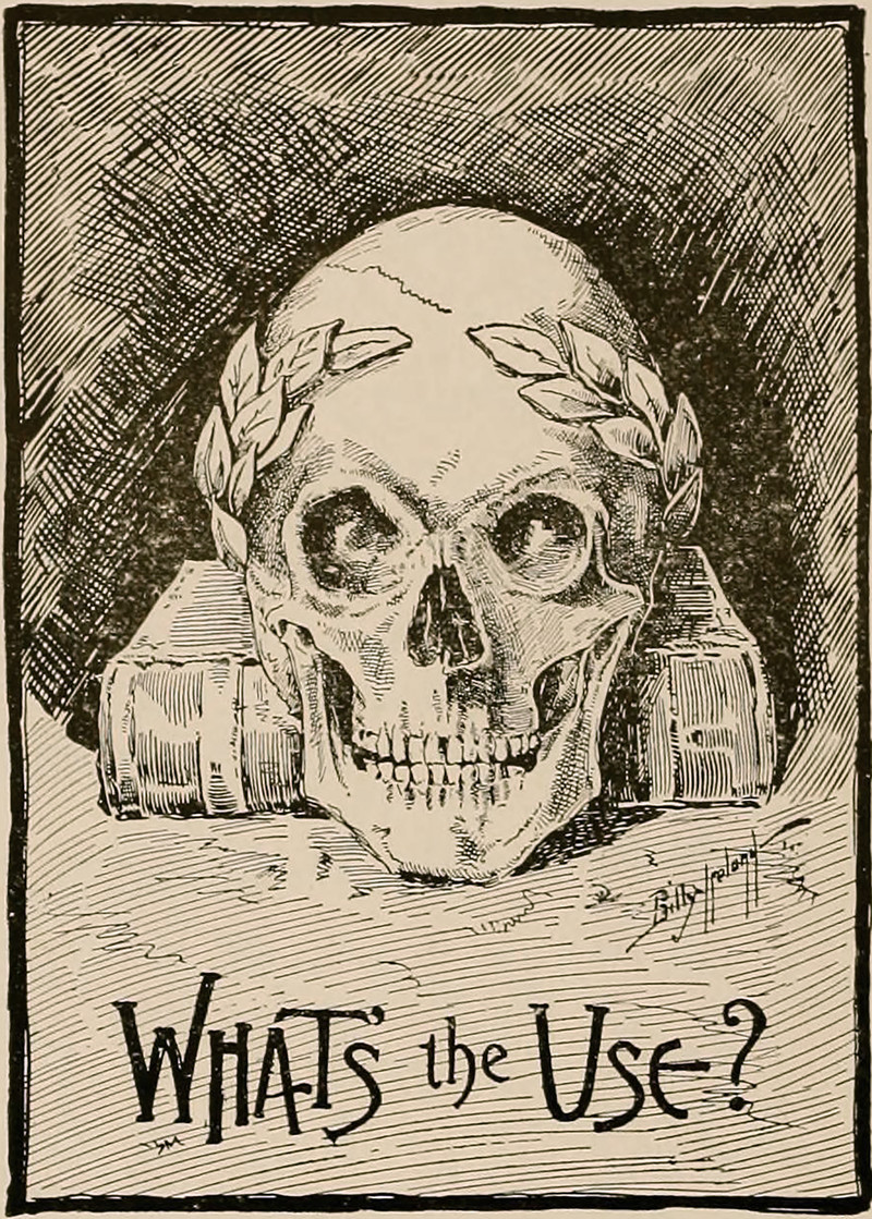 "I continuously brooded on the problems of existence—free-will and determinism, the whence and why and whither of man, the origin of evil, the immortality of the soul, the futility of life, etc., and made myself very miserable over such questions." From Peter Ibbetson, illustrated by George Du Maurier, 1891.