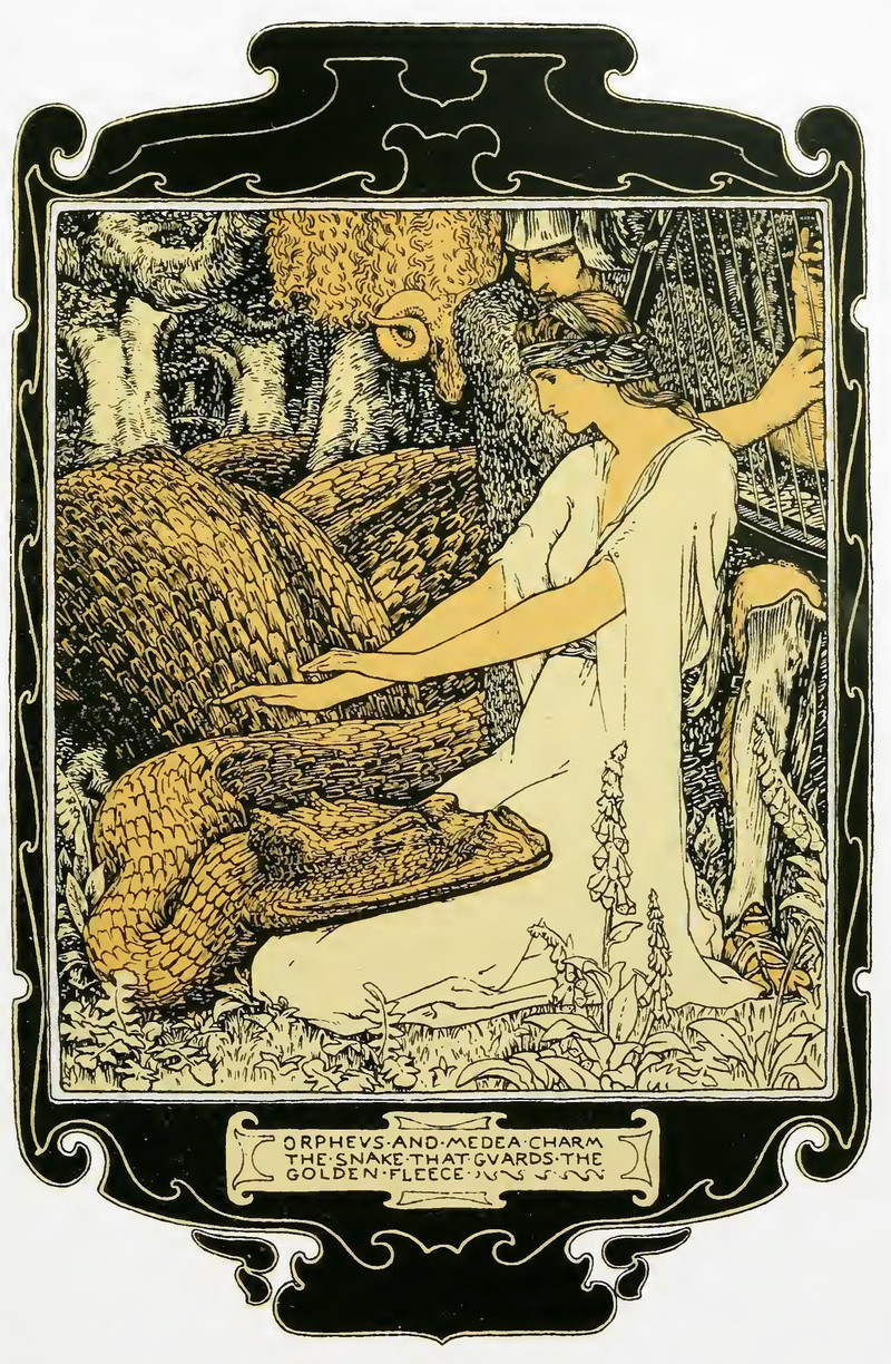 #vintage illustration #mythology #snake #greek #1900s #illustration #golden fleece #orpheus #medea