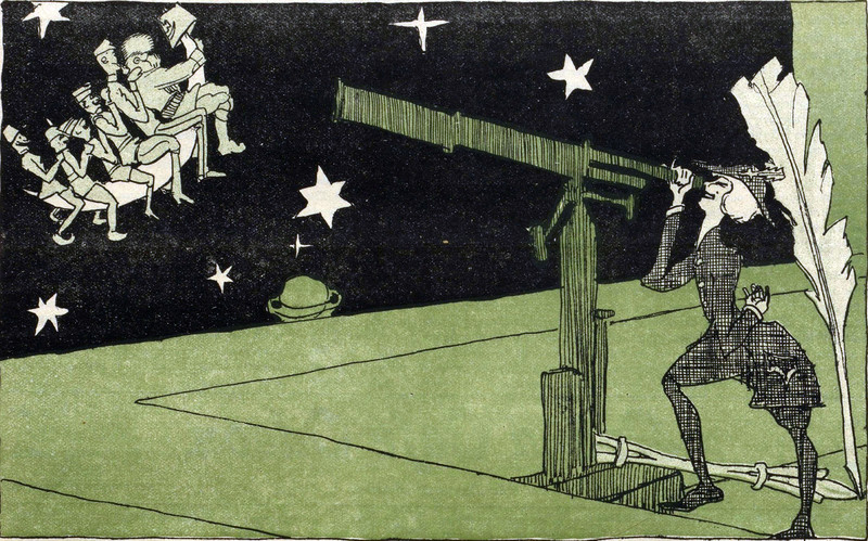 #vintage illustration #moon #man in the moon #telescope #illustration #astronomer #men in the moon #1910s