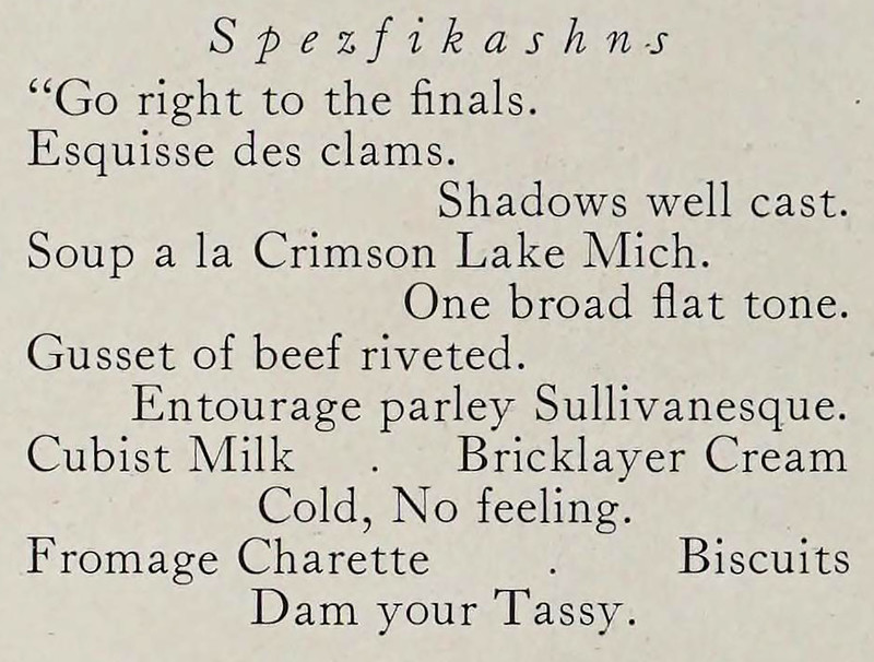 A menu featuring cubist milk.  From Armour Institute of Technology's 1914 yearbook.