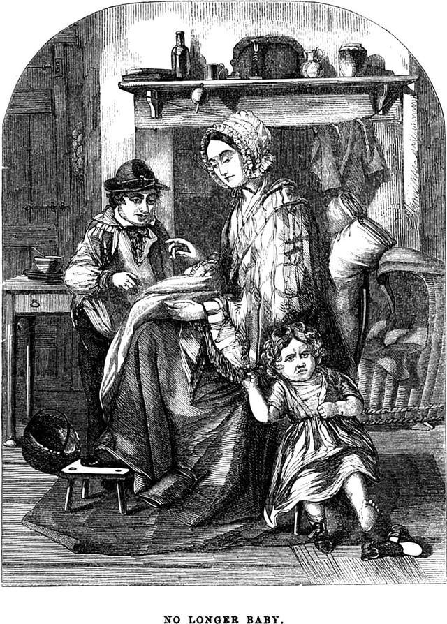 "No longer baby":  an illustration from an 1861 issue of Godey's magazine.