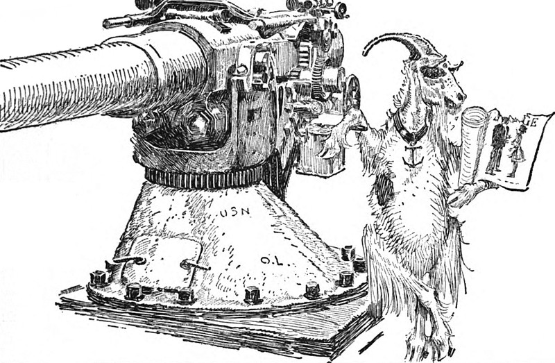 #vintage illustration #anthropomorphism #goat #big gun #military #naval gun