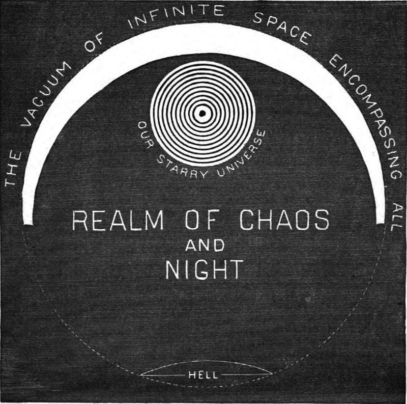 A diagram by Homer B. Sprague for Milton's Paradise Lost (1886). Speaking of which, what exactly are a snowball's chances in hell? See A Snowball's Chance in Hell.