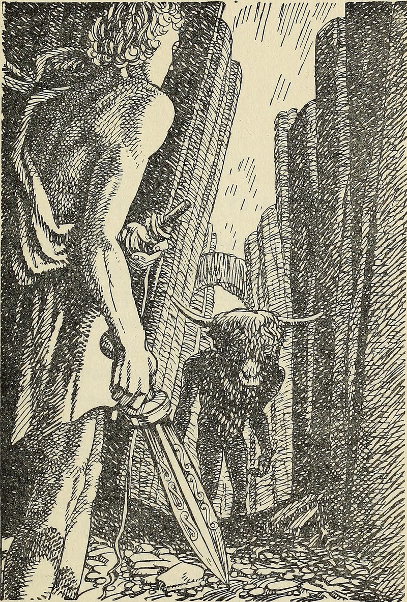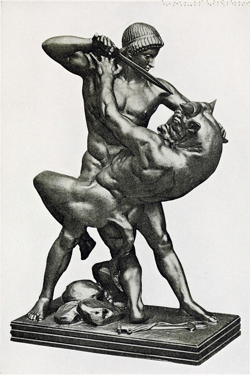 "The awful fight between Theseus and the Mintotaur." From Myths From Many Lands by Eva March Tappan, 1907.