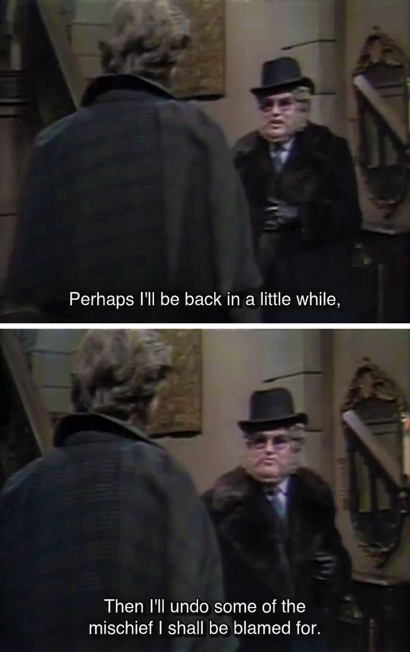 Here's a good exit line, from Dark Shadows episode 801. "Perhaps I'll be back in a little while; then I'll undo some of the mischief I shall be blamed for."