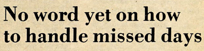 We're still waiting for word on how to handle missed days.  From the [DuPage] Courier, 1979.