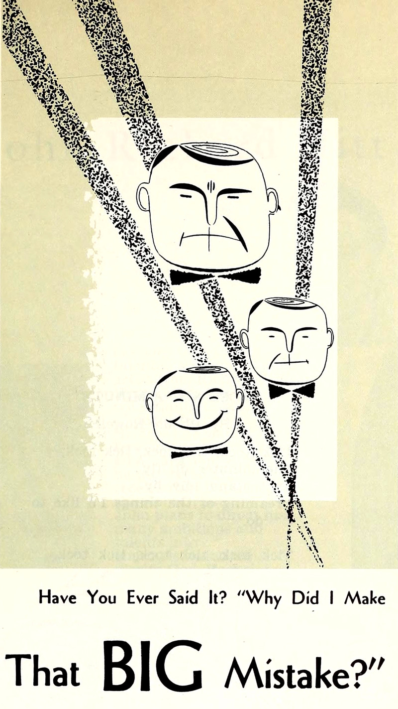 "Have you ever said it?  'Why did I make that BIG mistake?"  From Lighted Pathway, 1961.