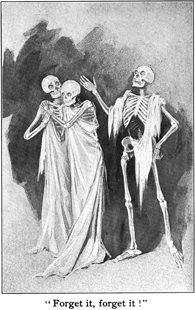 #vintage illustration #ghost #macabre #skeleton #book illustration #mnemosyne #forgetting #illustration