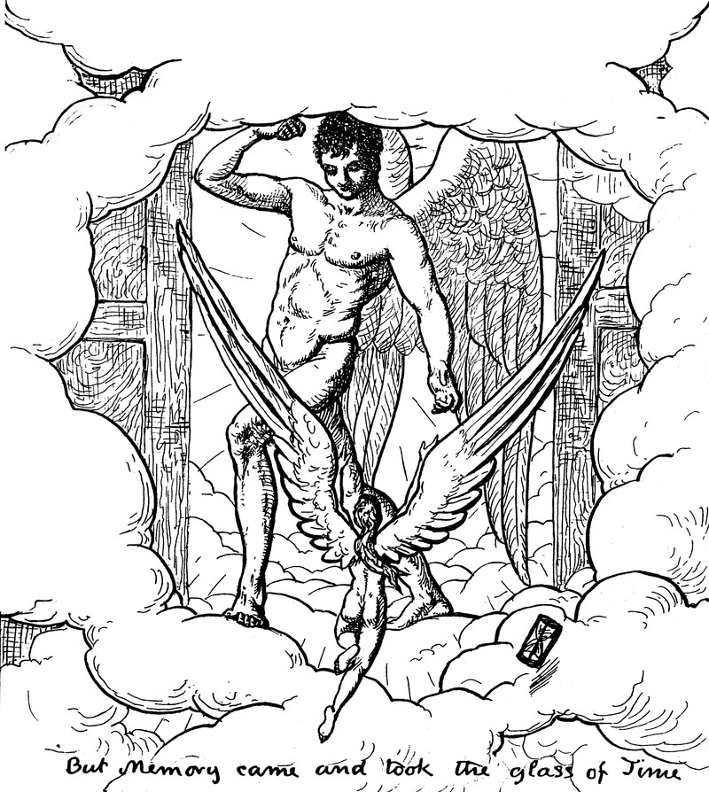 "But Memory came and took the glass of Time," from Seen in Three Days, written and illustrated by Edwin John Ellis, 1893.