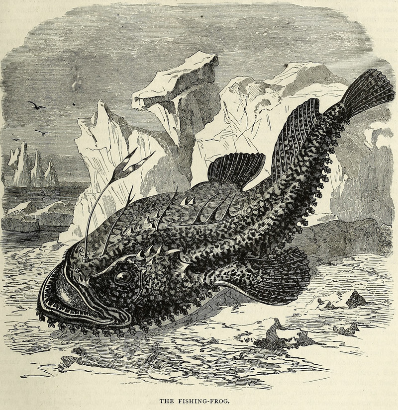 "The fishing-frog" (monkfish).  From The World of Wonders, 1883.