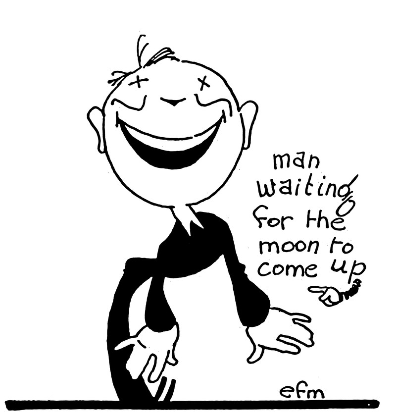 "Man waiting for the moon to come up."  From the University of Cincinnati's 1928 yearbook.