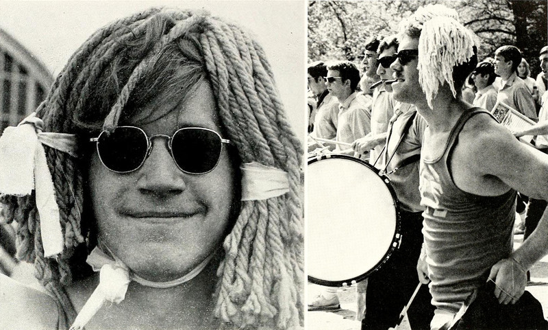 A bold mop wig from the University of Mississippi's 1961 yearbook.