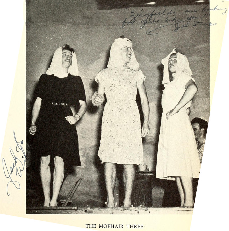 #vintage yearbook #yearbook #1940s #vintage men #cross dressing #men #mop hair #mop wig