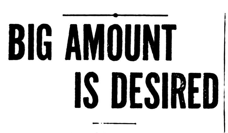 "Big amount is desired."  From the Duluth Herald, 1920.