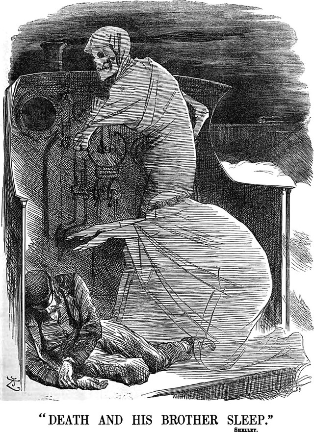 An illustration from an 1890 issue of Punch magazine.  The caption reads: "Death and his brother Sleep."