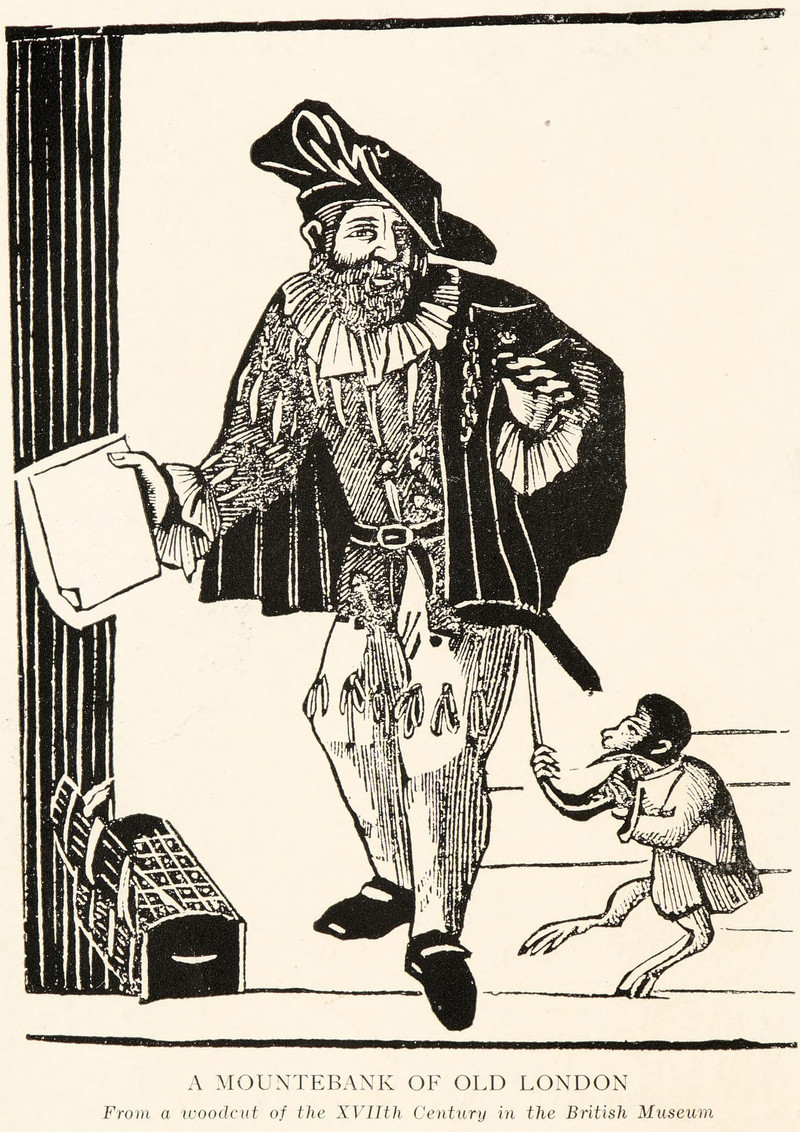 #vintage illustration #trickster #monkey #charlatanism #mountebank