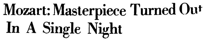 "Mozart: masterpiece turned out in a single night."  From the Bombay Sunday Chronicle, 1951.