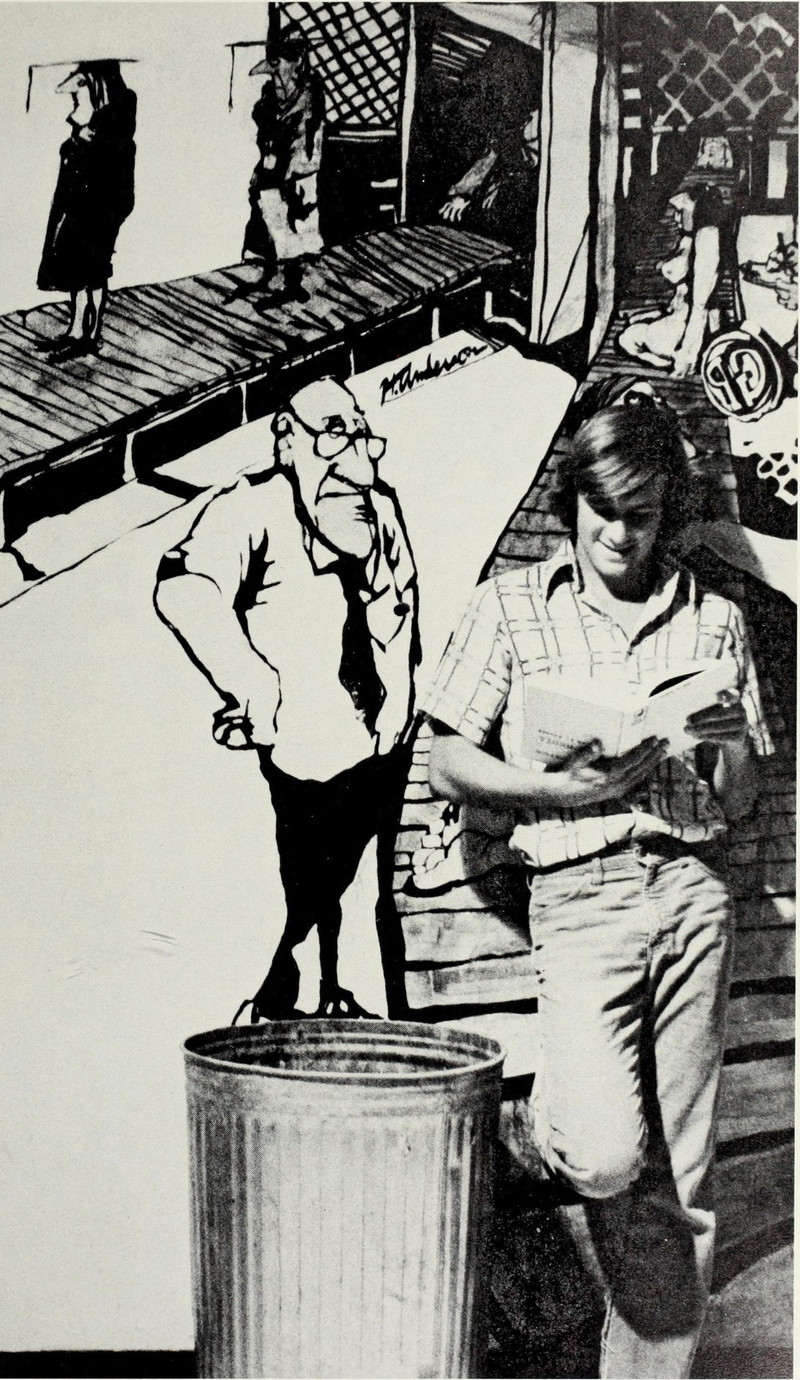 When wall murals read over your shoulder.  From Santa Clara's 1977 yearbook.