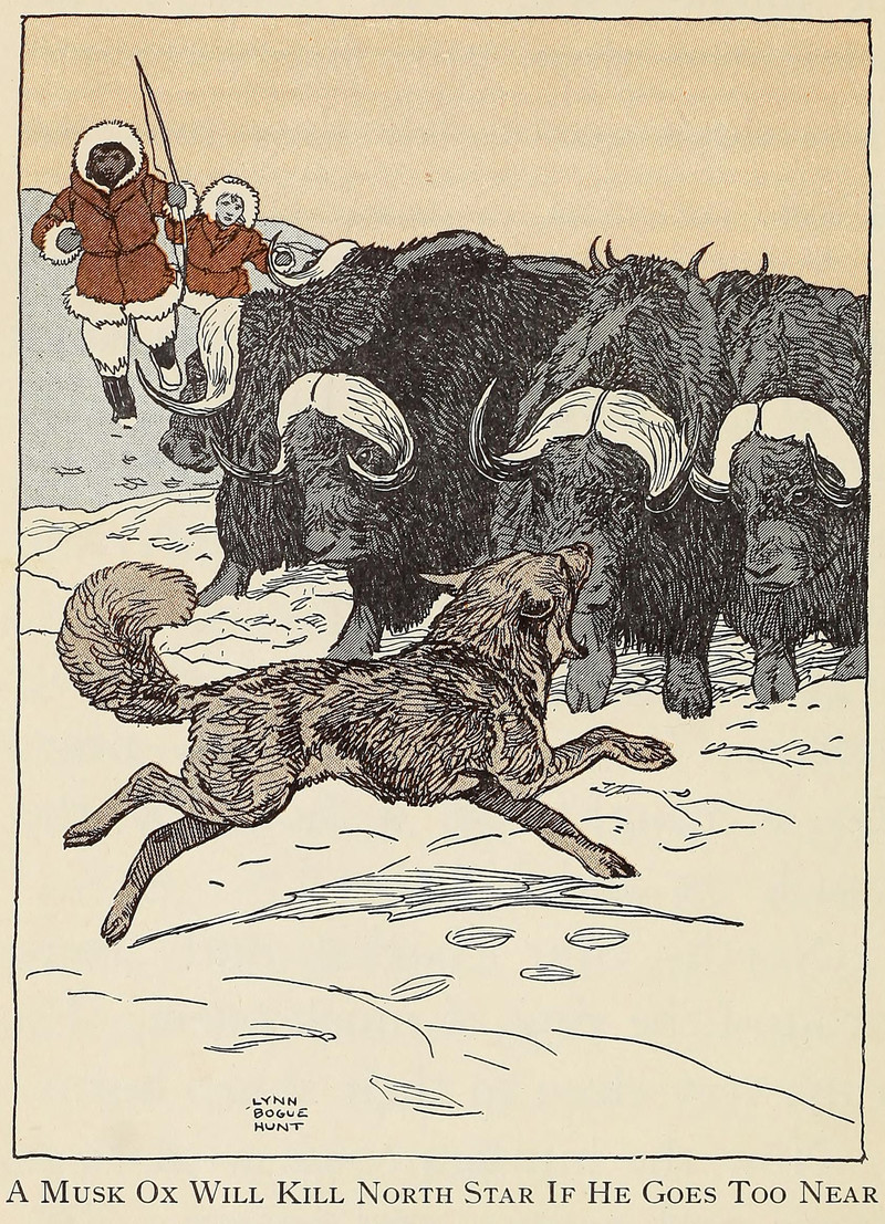 #vintage illustration #dog #1920s #eskimo #illustration #musk ox