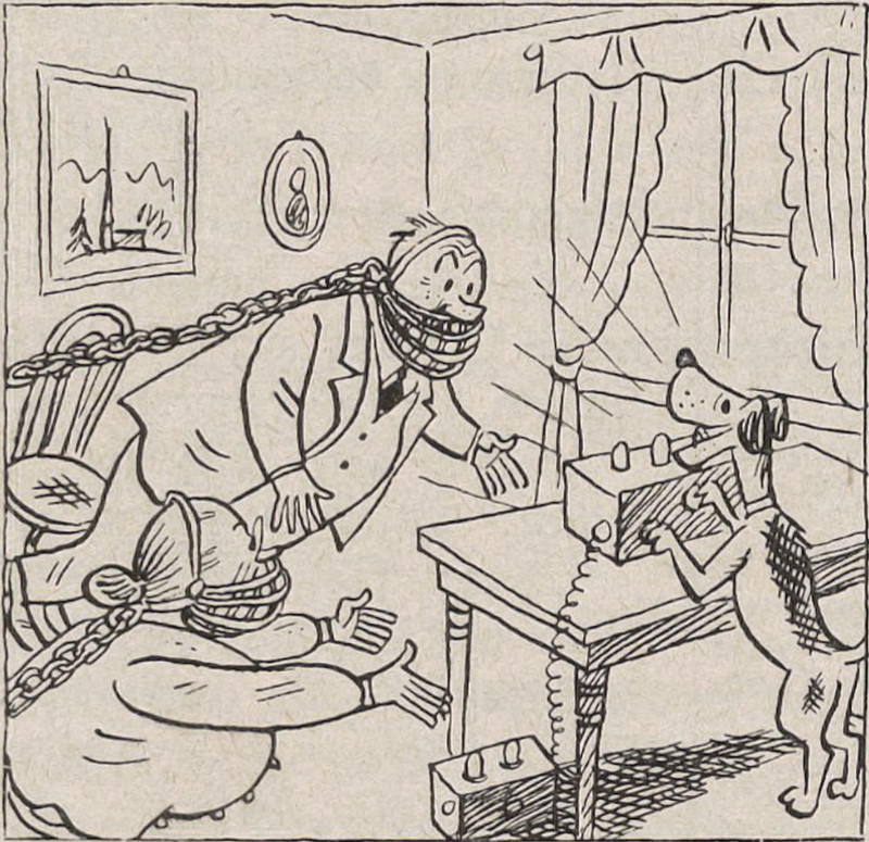 "Proper muzzle for a bird dog."  From The Judge, 1916.