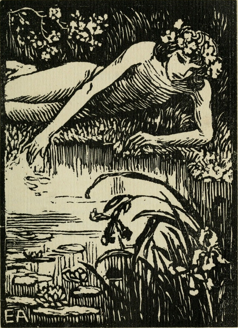 #vintage illustration #woodcut #reflection #greek mythology #narcissus