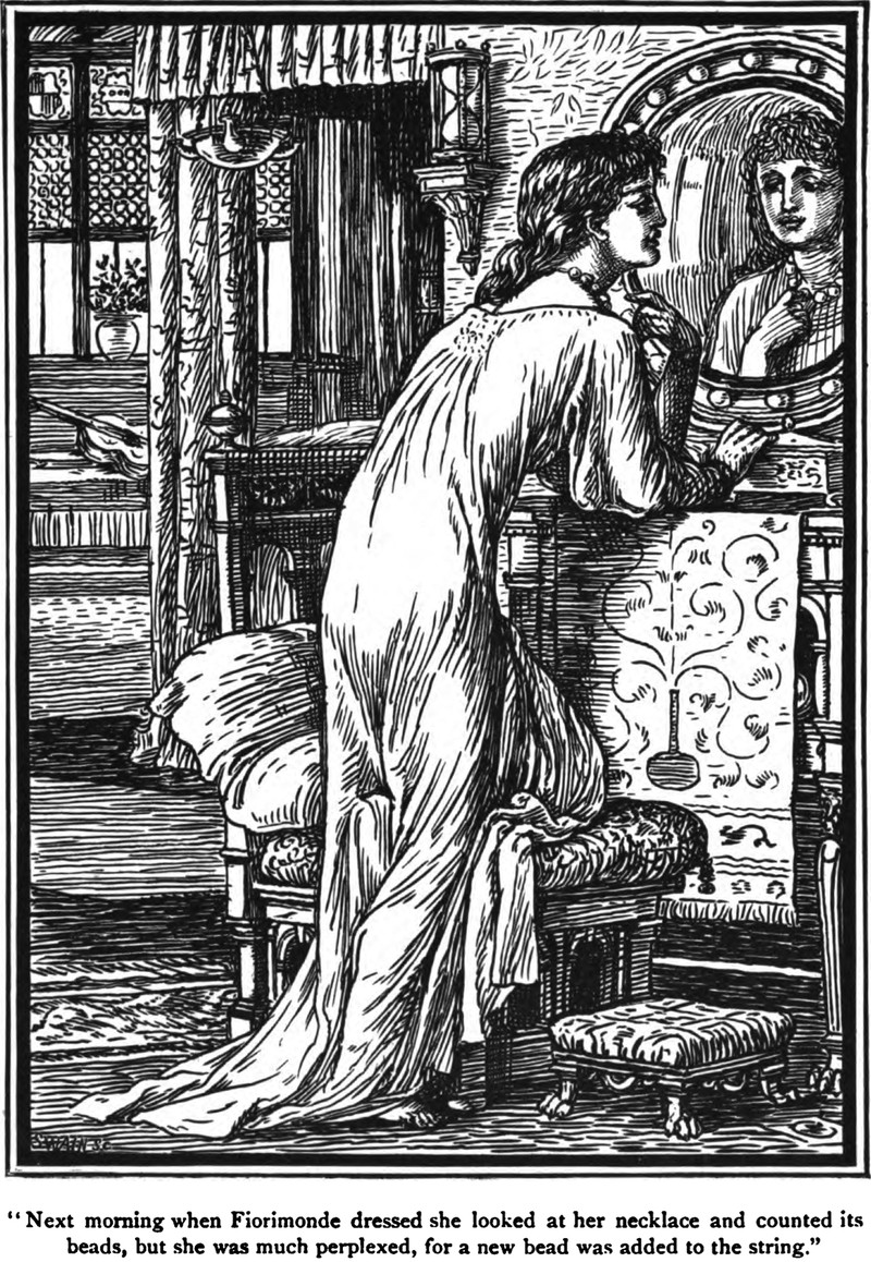 "She was much perplexed, for a new bead was added to the string."  From The Necklace of Princess Fiorimonde and Other Stories by Mary de Morgan, 1880.