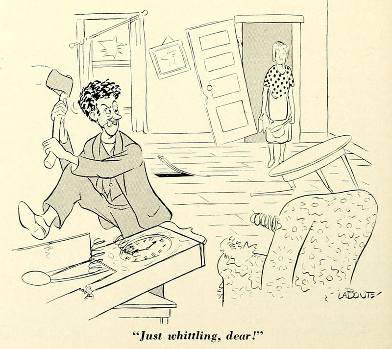 Taking an ax to the grandfather clock.  From Purple Parrot, 1952.