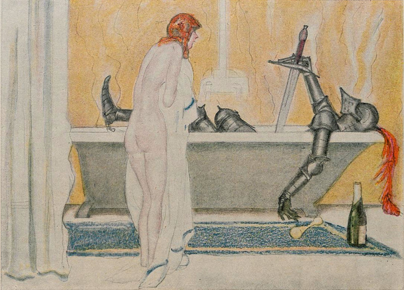 #vintage illustration #knight #illustration #bathtub #never nude