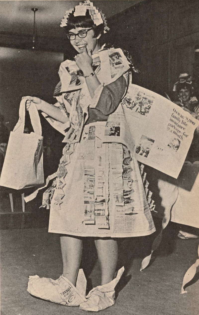 #fashion #vintage yearbook #yearbook #newspaper fashion #newspaper robe #paper clothing #newspaper clothing