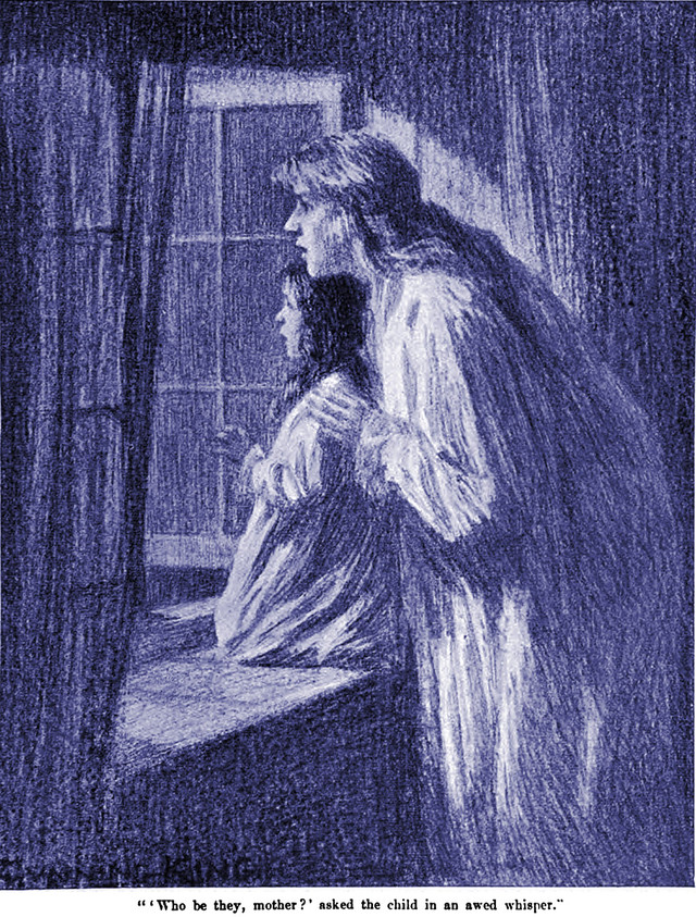An illustration from a 1908 issue of The Windsor magazine.  The caption reads: "'Who be they, mother?' asked the child in an awed whisper."
