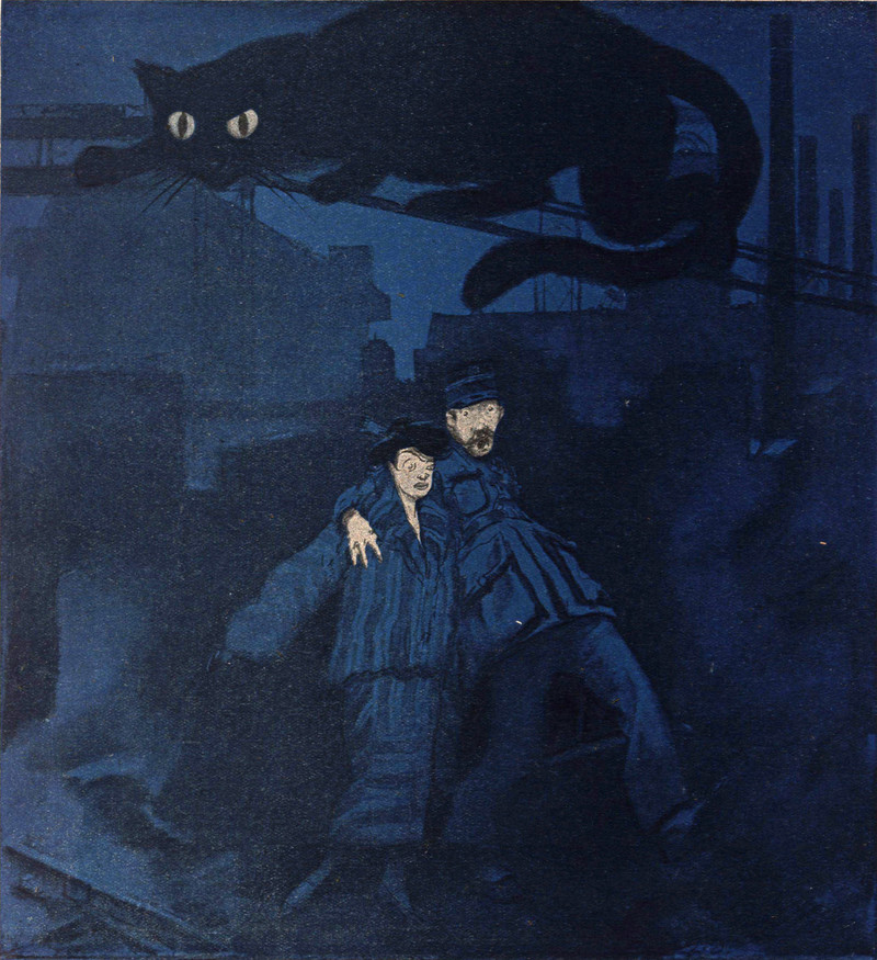 #vintage illustration #black cat #insomnia #cats #night #creatures of the night #night prowler #illustration #a thousand eyes