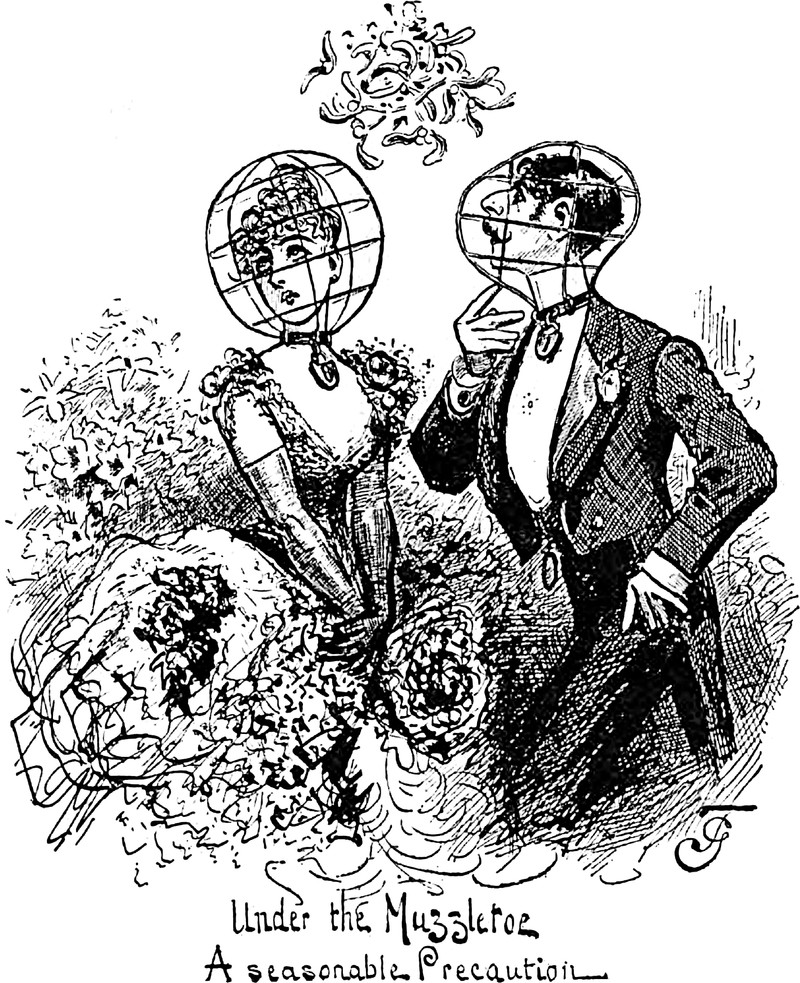 An illustration from an 1890 issue of Cosmopolitan magazine. The caption reads: "Don't kiss me."
