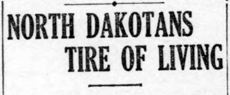 "North Dakotans tire of living."  From the Duluth Herald, 1911.