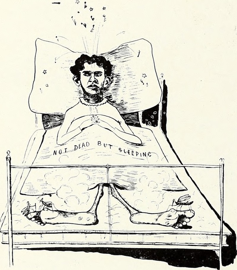 "Not dead but sleeping," from the University of Nevada's Artemisia yearbook, 1904.  See How to Hoodoo Hack a Yearbook.