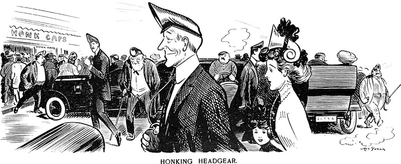 "Honking Headgear": an illustration from a 1909 issue of Puck magazine.
