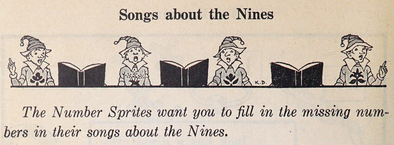 "Songs about the nines."  From Canadian Individual Arithmetics, Book C, c. 1936.