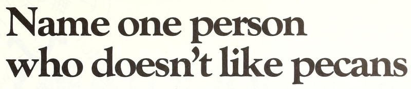 "Name one person who doesn't like pecans."  From The Lighted Pathway, 1982.