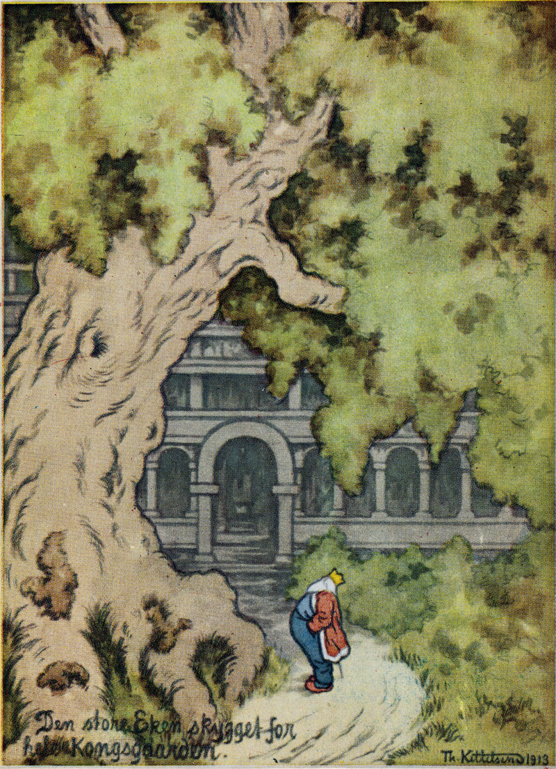 Here's the large oak shading the king's palace.  "Den store eken skygget for kongsgården" by Theodor Kittelsen, date unknown.