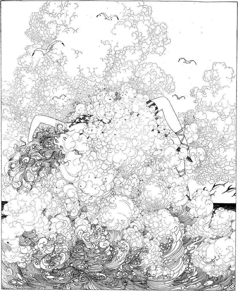 #vintage illustration #water spirit #riding the waves #sea foam #ocean waves #ocean spirit #sea spirit