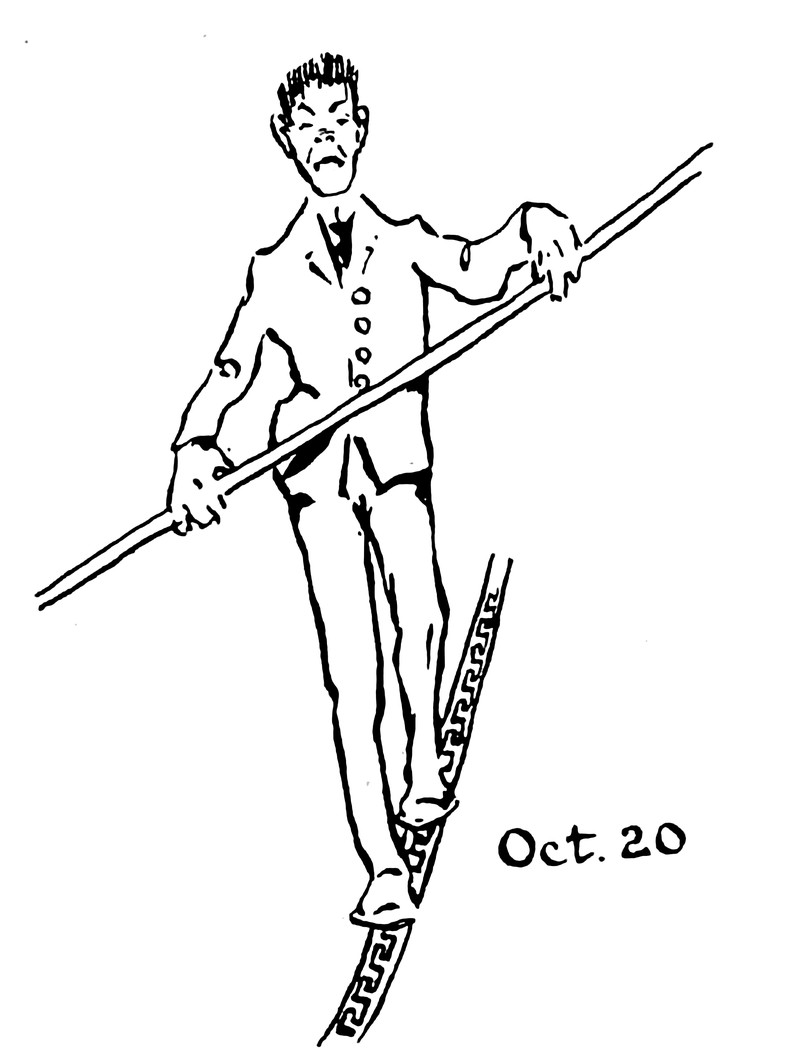 #vintage illustration #october #balancing act #vintage yearbook #yearbook #1900s #illustration #tightrope #oct. 20 #october 20
