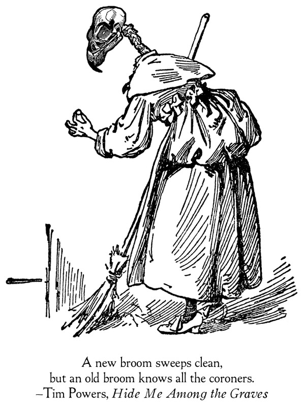 From Prof. Oddfellow's sketchbook: Death finds a lucky penny. Dedicated to the mysterious Gordon Meyer, who turned us on to the wonder that is Tim Powers.