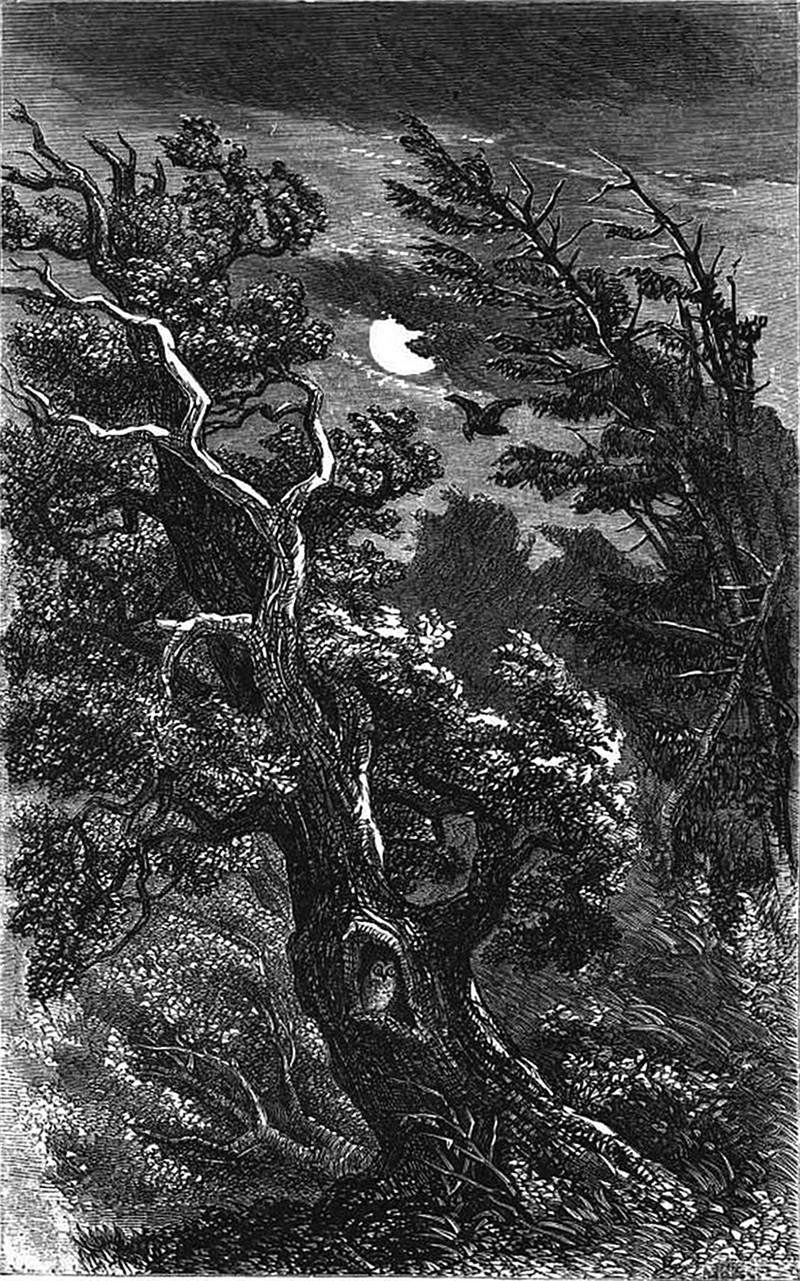 #vintage illustration #owl #spooky #full moon #tree #illustration #old tree