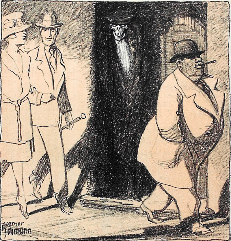When the boat has eyes, bat wings, and shouded figures aboard, double check your ticket and make sure you're on the right pier. From Lustige Blätter, 1906.