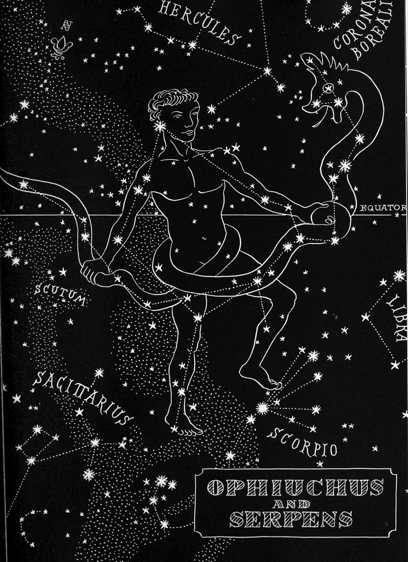 #vintage illustration #vintage yearbook #yearbook #constellations #hercules #1960s #ophiuchus #pisces #corona borealis