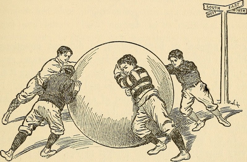 #vintage illustration #opposing forces #toward the center #giant ball #illustration #art