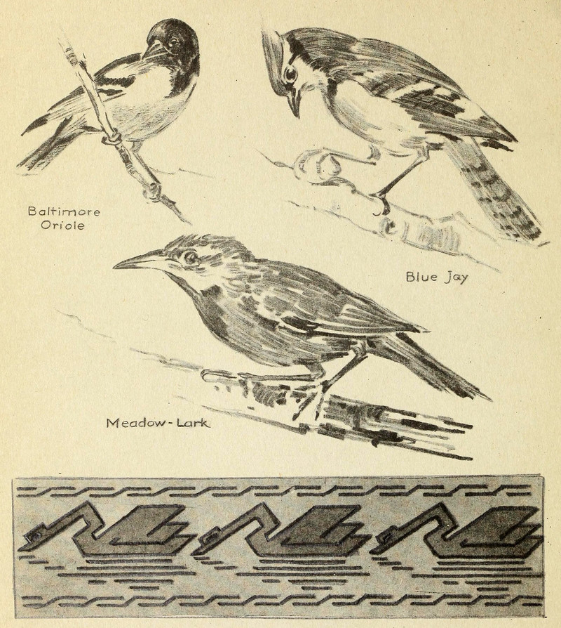 #vintage illustration #drawing #bird #lark #illustration #1910s #blue jay #oriole #baltimore oriole #meadow lark